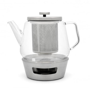 De Bari theeset bestaat uit een glazen theepot en een rechaud/theelicht. Het geheel is modern vormgegeven.